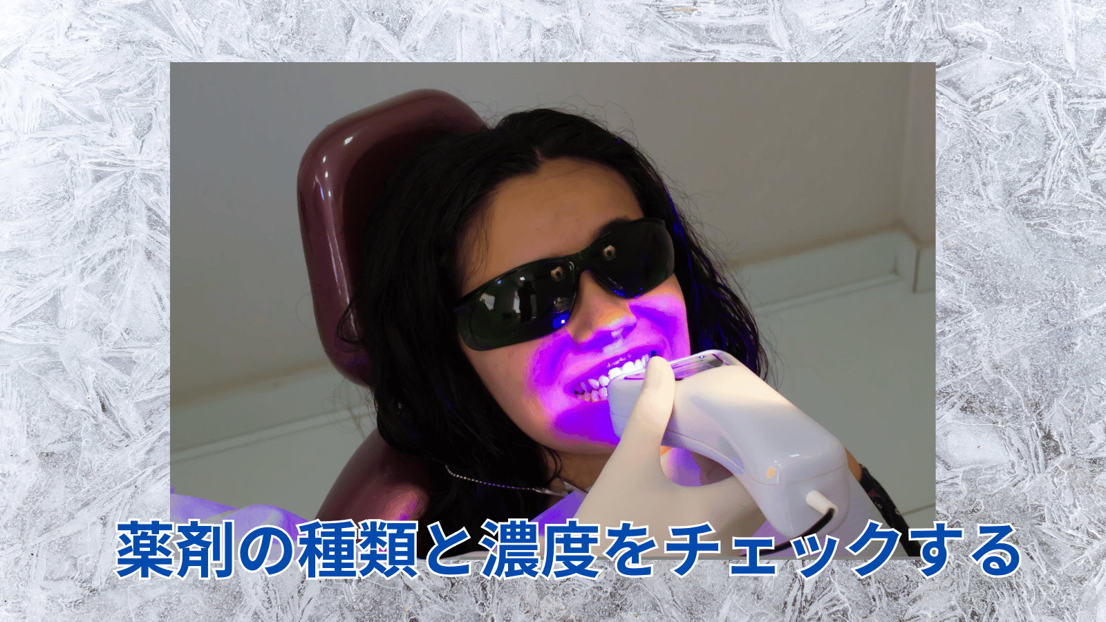 一般的には、歯の内部まで薬剤を浸透させて白さへと導く過酸化水素が用いられています。ただし、人によっては刺激を感じたり、しみたりすることがあるかもしれません。