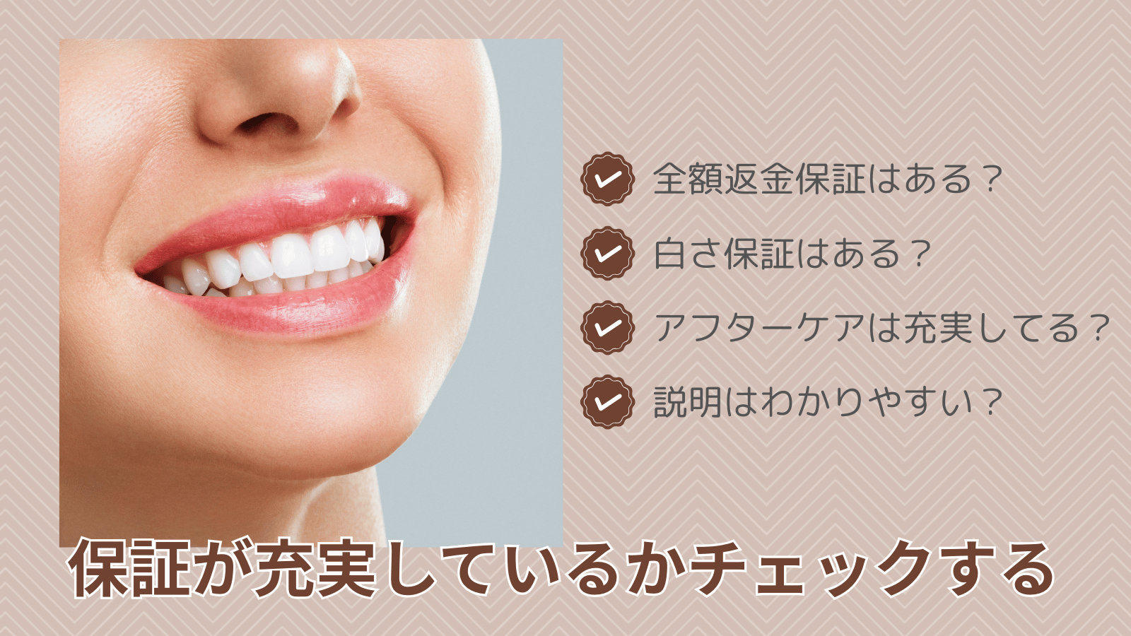 同じ施術を受けたとしても、ホワイトニングの効果には個人差があります。そのため、保証制度が充実しているクリニックを選ぶと始めやすいです。