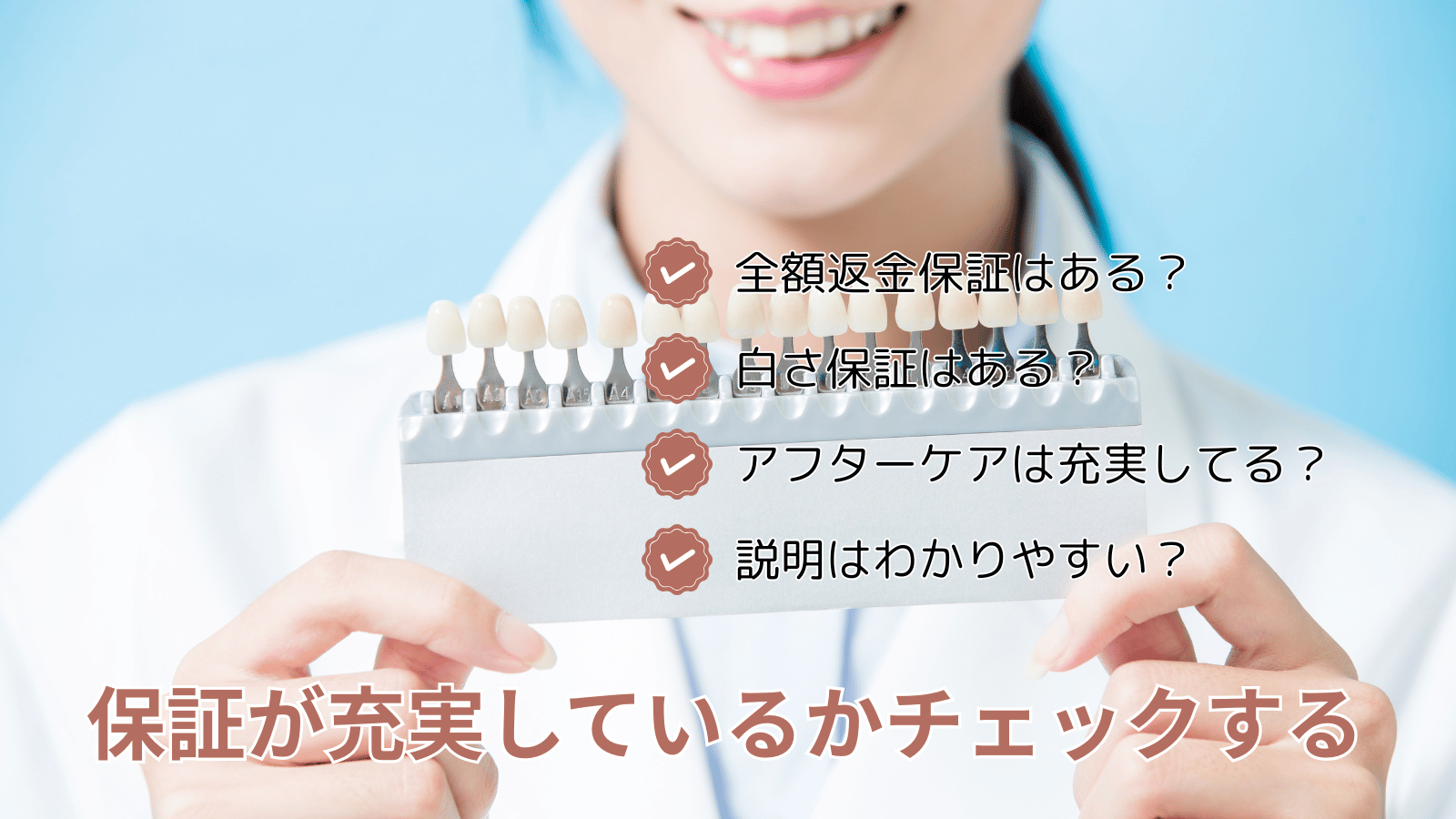 たとえば、白さの効果が得られない場合は全額返金保証があったり、一定の白さになるまで何度でもホワイトニングができるクリニックがあったりします。