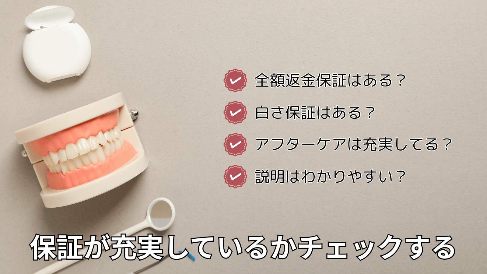 たとえば、全額返金保証があったり、一定の白さにならない場合は無料で何度でも追加施術が受けられたりする保証を提供しているクリニックもあります。
