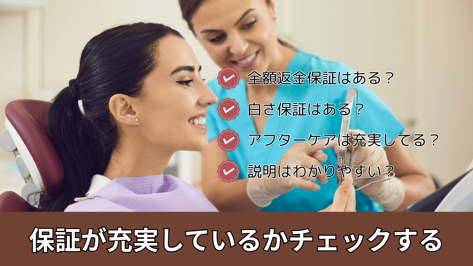 例えば、全額返金保証があるクリニックなら、もし希望するような白さにならなくてもお財布の負担を抑えられます。