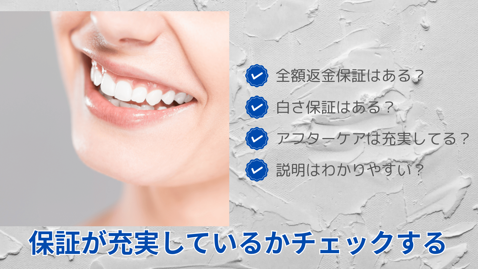 ホワイトニングで得られる効果にはどうしても個人差が出てしまうため、保証制度が整っているクリニックで施術を選ぶのが安心です。