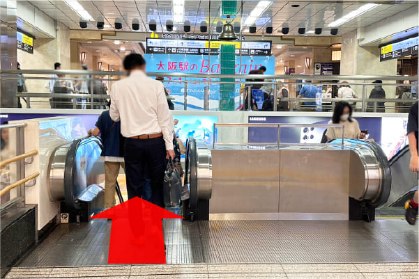 まっすぐ進むと、「大阪駅前第1・2・3・4ビル」行きの看板が見えます。